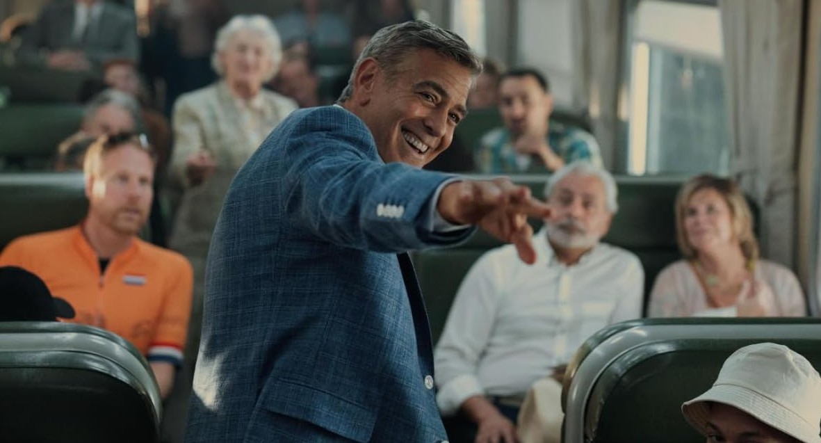 And when they try push the narrative a little further, it feels more like farce than reality – from the big star charming random passengers from all nationalities in the 2nd class carriage of a Tuscan train to having him turn into the kind of hero he portrays, as he chases a much younger thief across a field.
